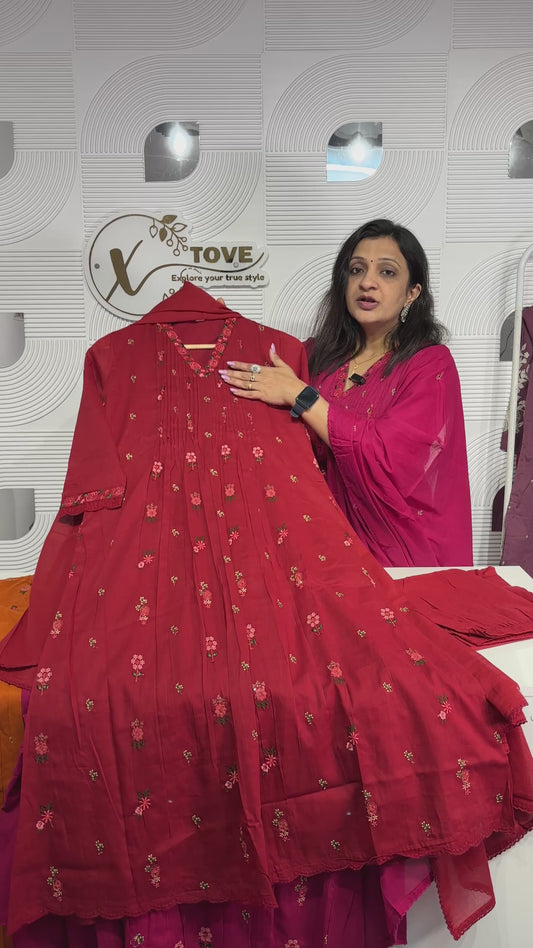 A1763 Mul Cotton Embroidered Suit(Maroon Red)