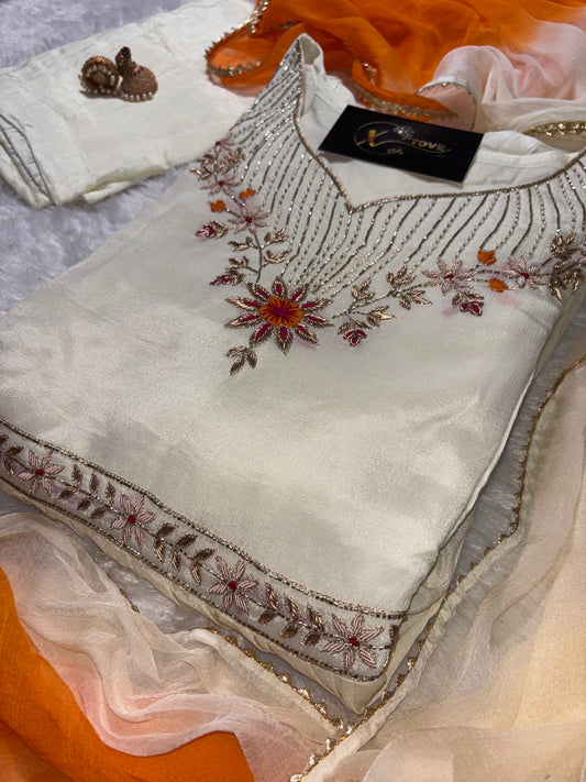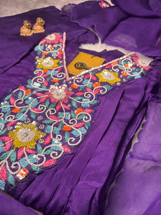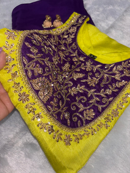 B1992 Neon & Purple Combination Zardozi Handwork Suit
