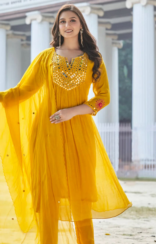 Sold outB1995 Mul Chanderi Mirror Work Suit