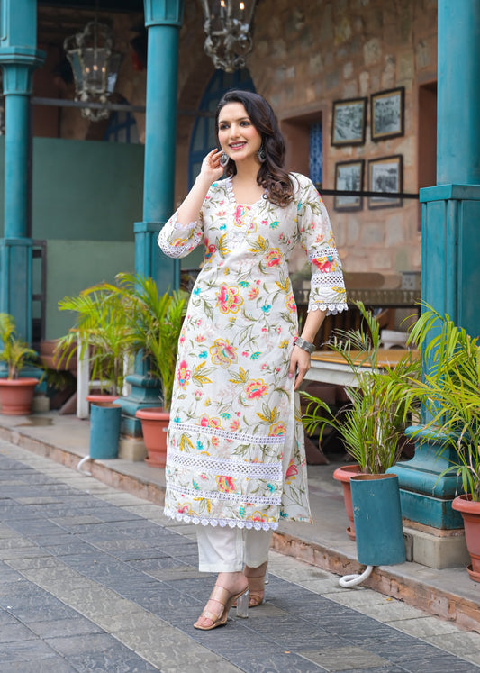 A1695 Cotton Kurti Set with Stylish Lace Work