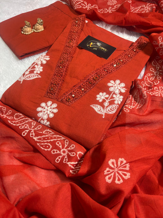 Sold outA1696 Mul Cotton Embroidered Suit