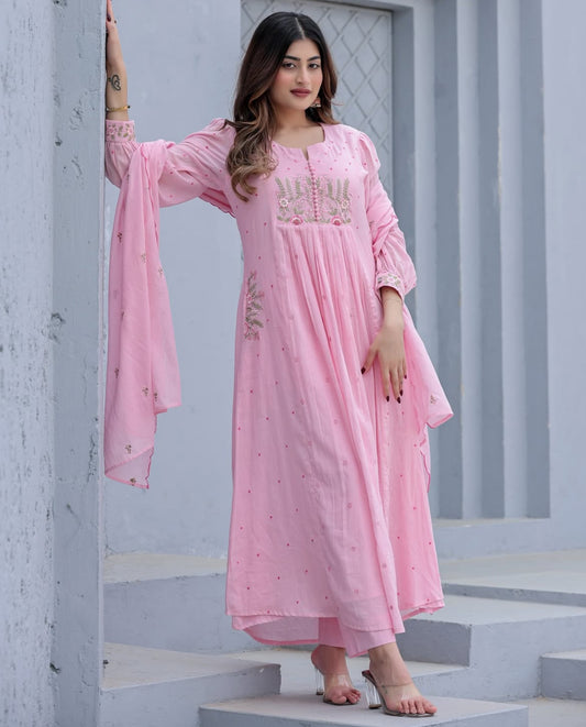 B2004 Mul Chanderi Zari Work Anarkali Suit