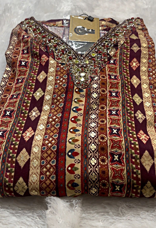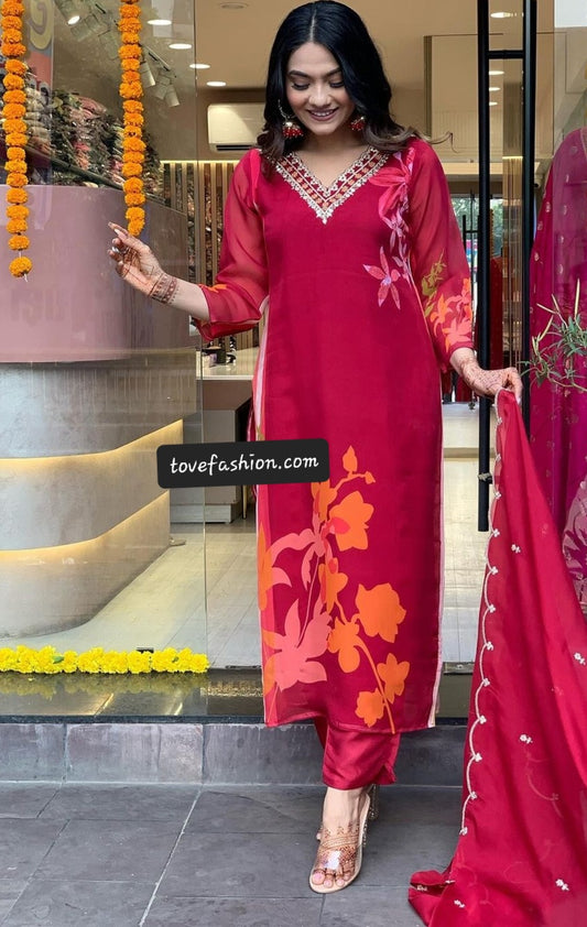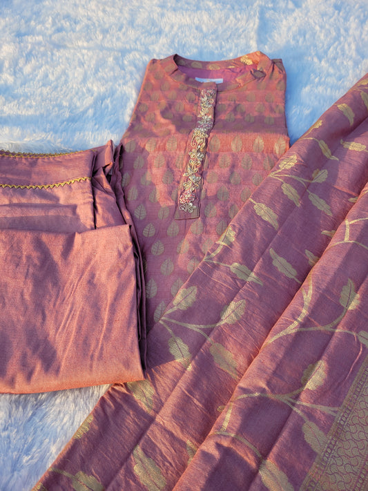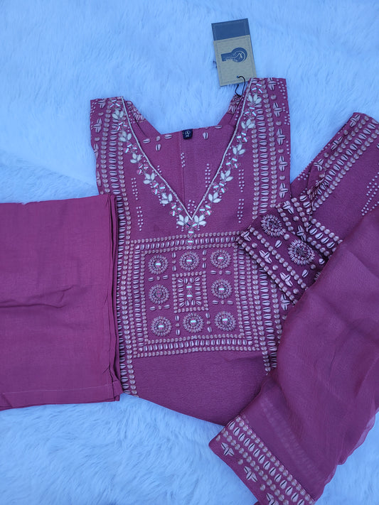Pure Imported Rayon Three piece Suit with Soft Chiffon Dupatta with Beautiful Handwork