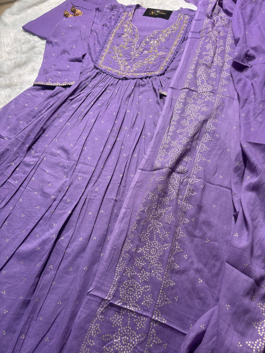 B2004 Mul Chanderi Zari Work Anarkali Suit