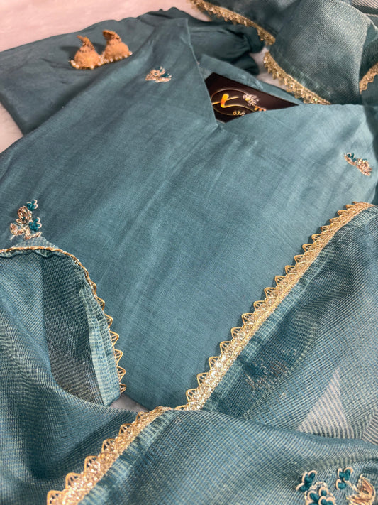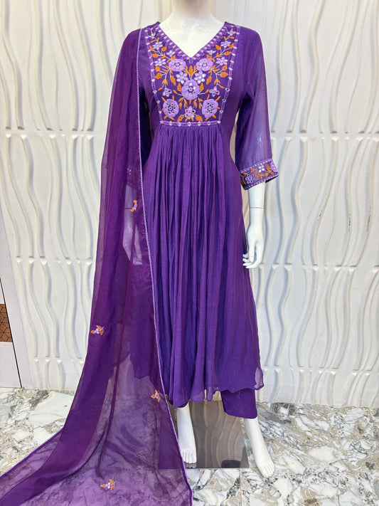 B2115 Chinon Suit With Stunning Handwork And Embroidery