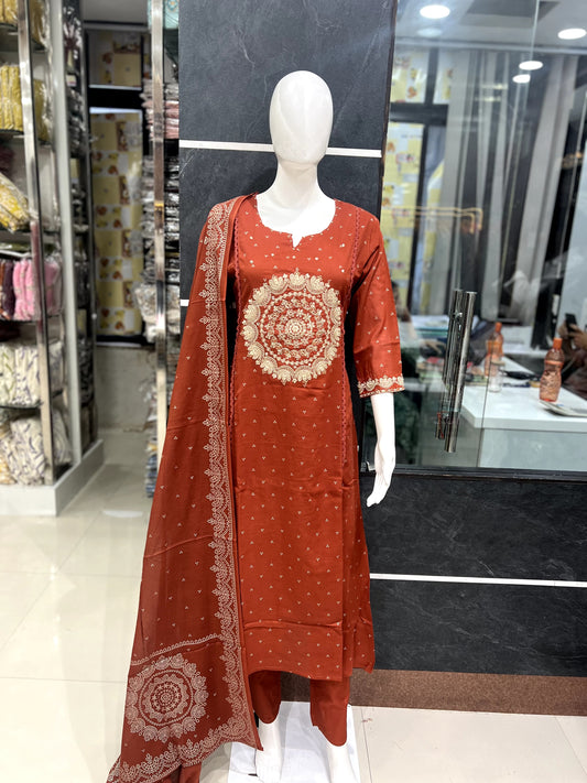 A1721 Silly Mul Cotton Ethnic Suit Set with Lace Work, Beads & Embroidered Dupatta
