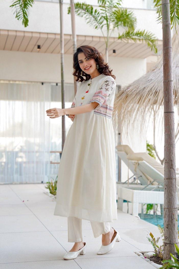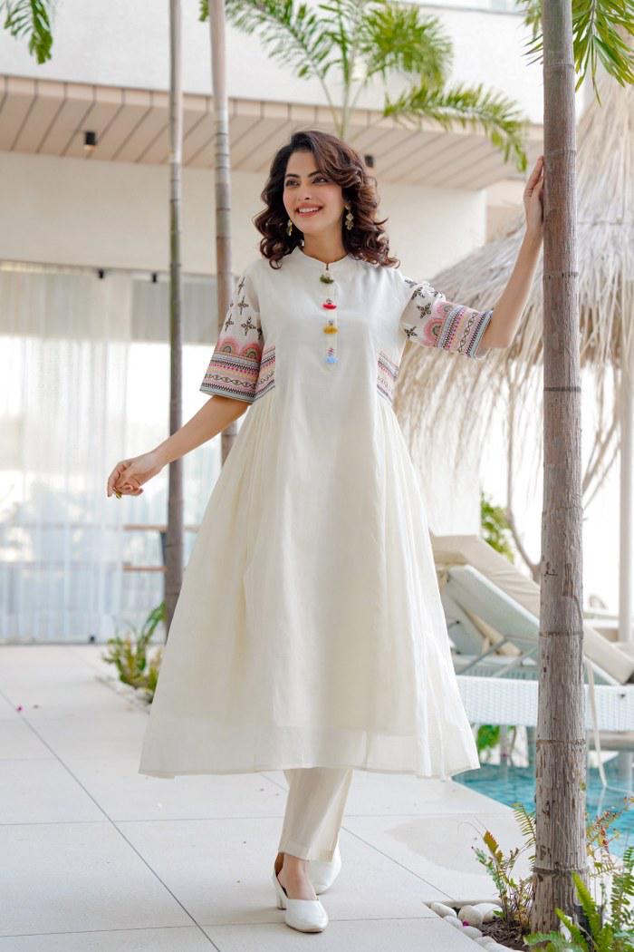 • Design: Elegant A-line kurta with minimal yet charming appeal