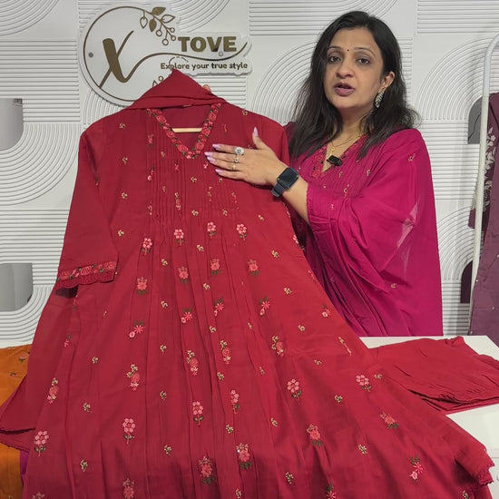 A1767 Embroidered Mul Cotton Suit(MAROON RED)
