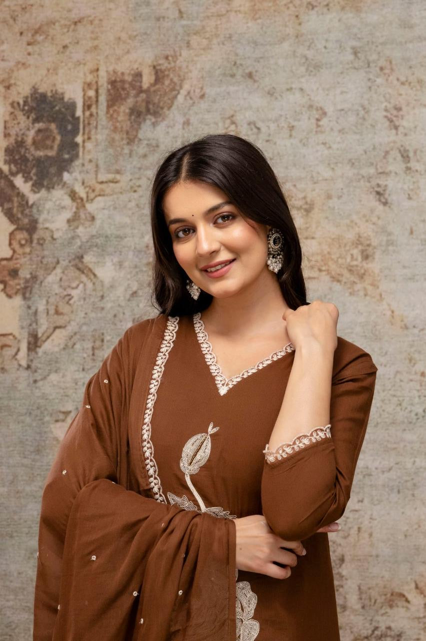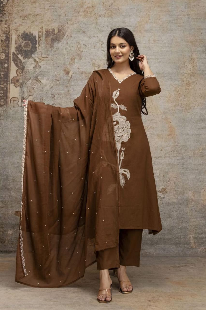 Elevate your ethnic wardrobe with this silly mul cotton three-piece suit, crafted for elegance and comfort. The kurta features delicate embroidery with fine bead handwork, adding a touch of sophistication. The neckline and sleeves are beautifully adorned with lace detailing, enhancing its graceful appeal. Paired with a dupatta highlighted with tiny embroidered buttis and lace borders, this set brings a perfect balance of simplicity and charm.