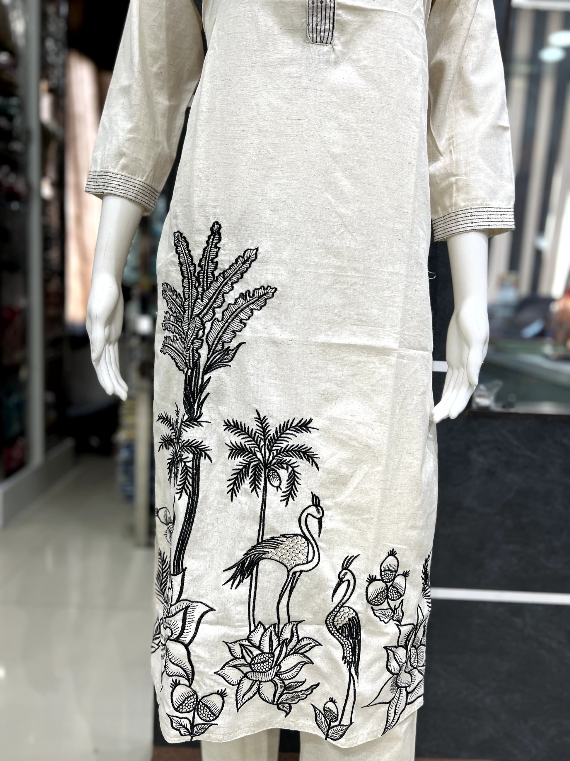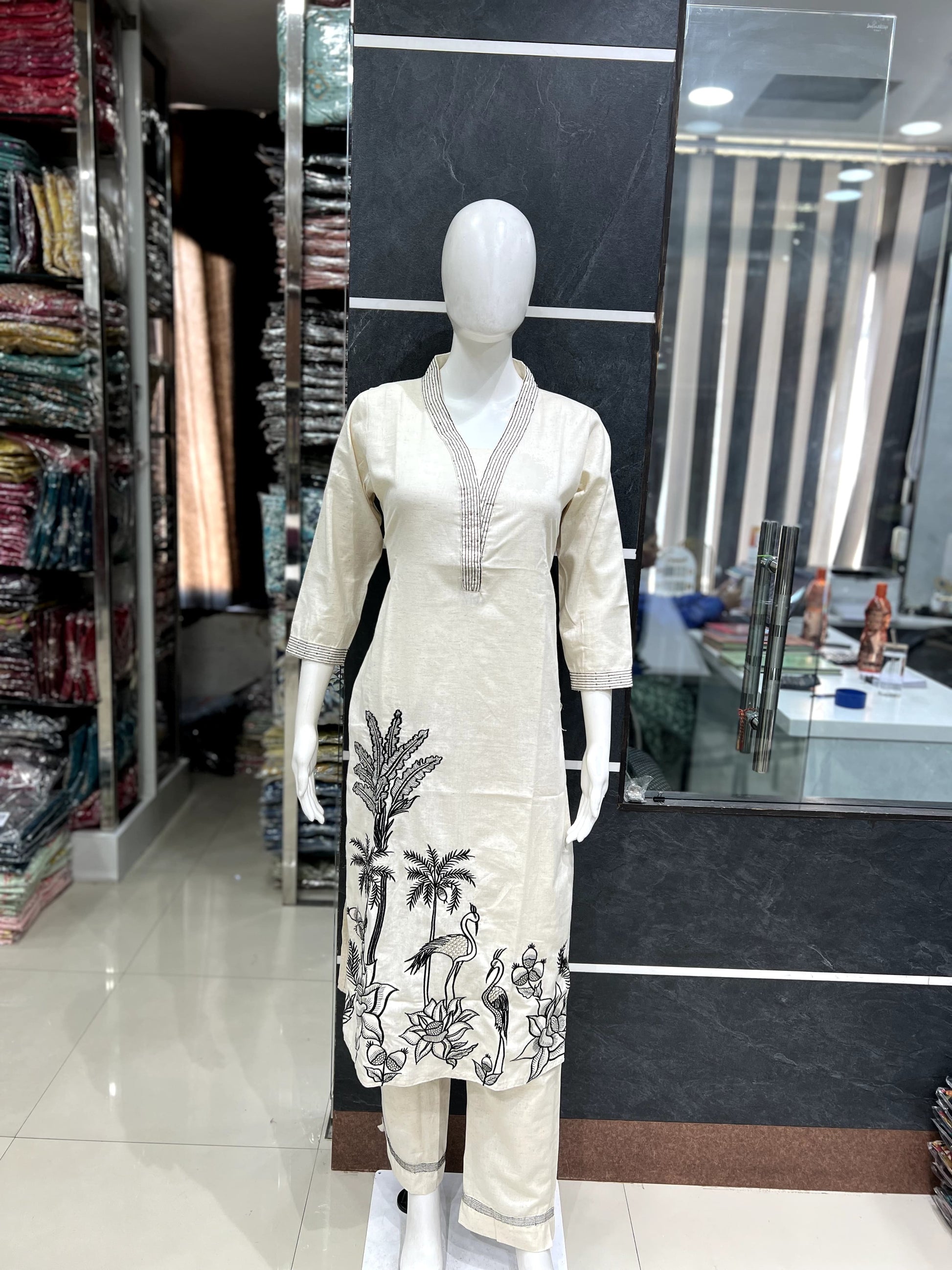 ▪️Featuring Embroidery on the neckline and beautiful scenery embroidery on daman of the kurta