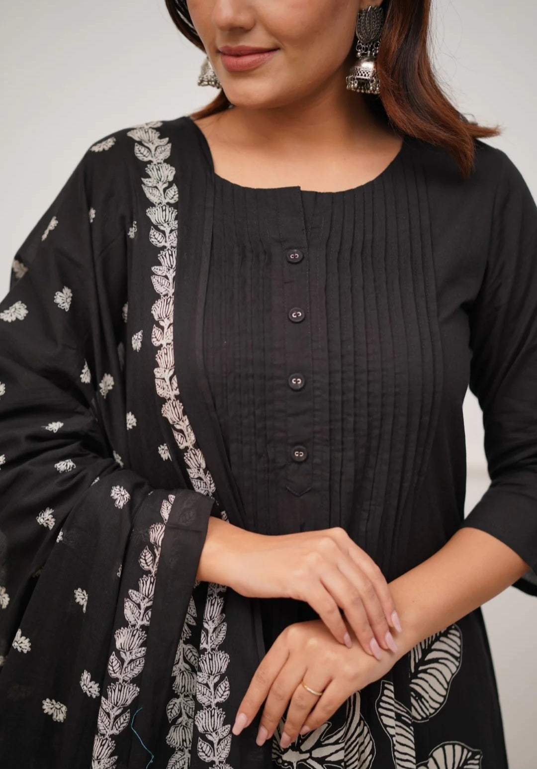 ✅️ The printed top features elegant pin-tucks detailing on the yoke and a beautiful floral print.