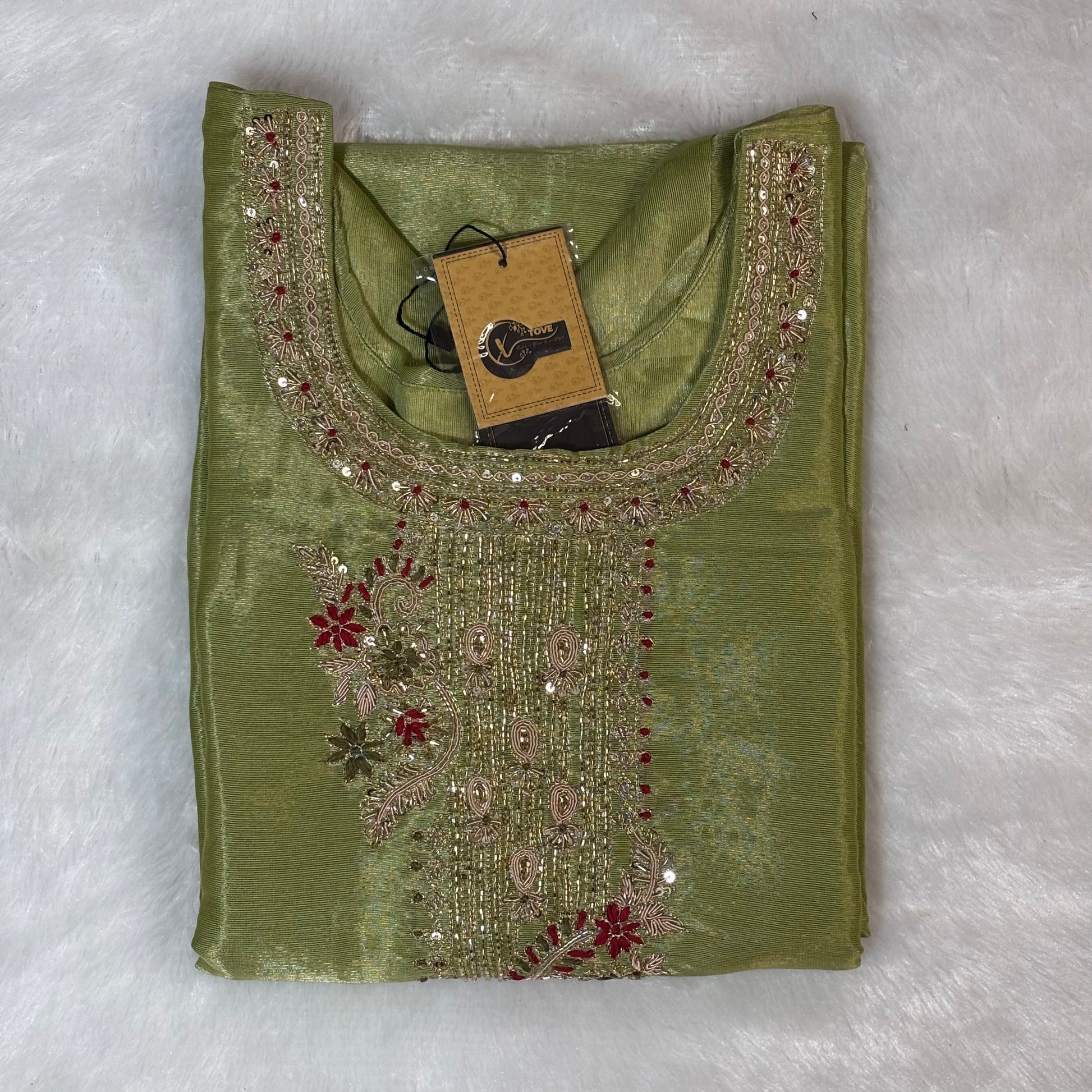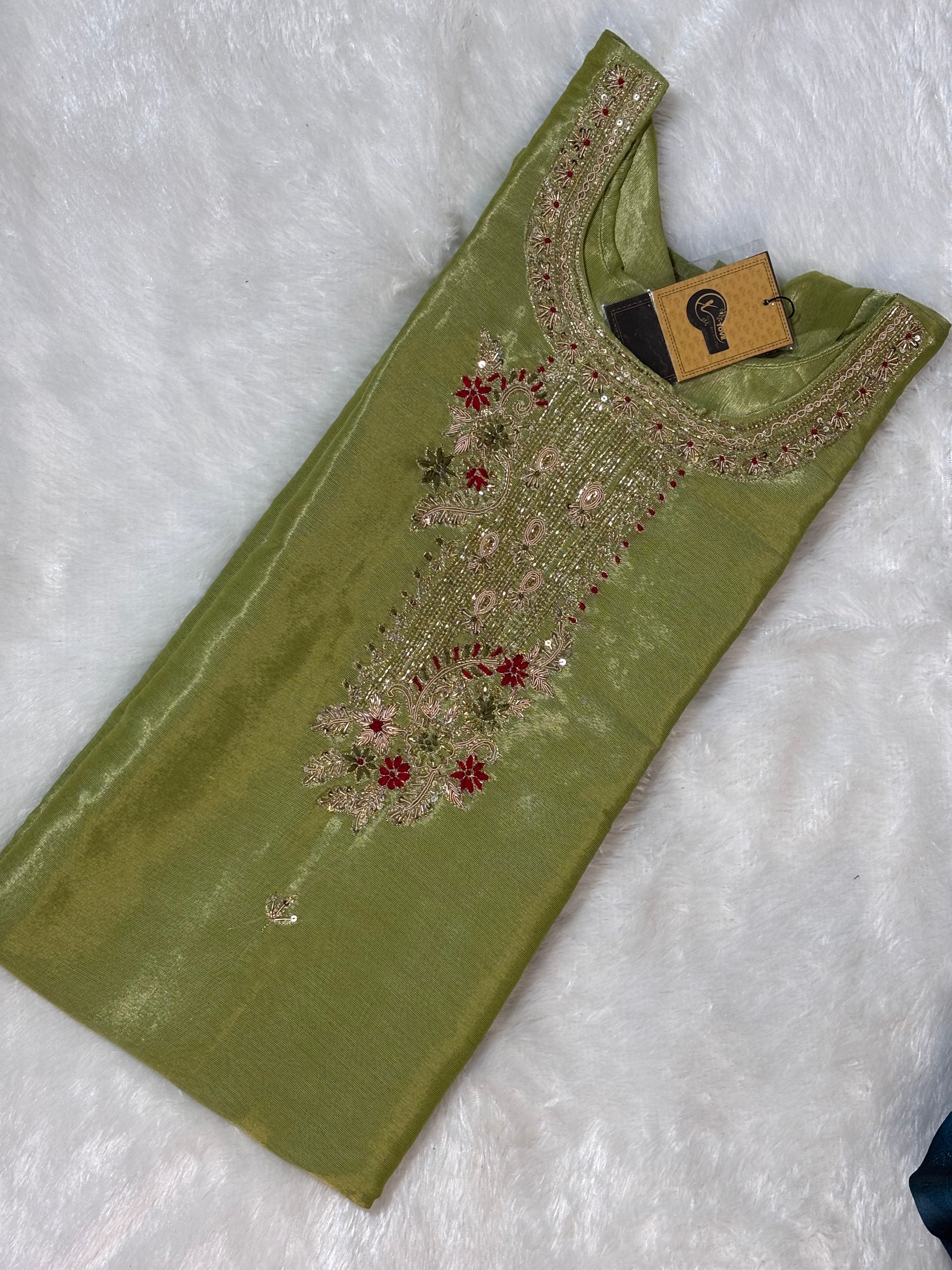 Tissue Shimmer Suit with Santoon Bottom and Beautiful Chanderi Banarasi Weaving Dupatta